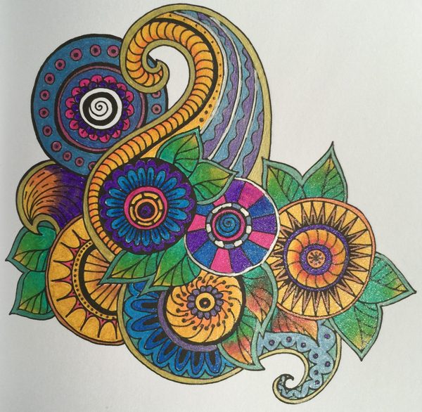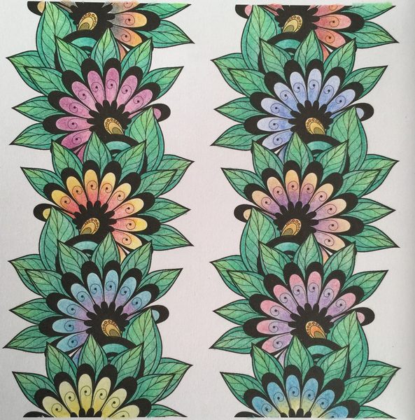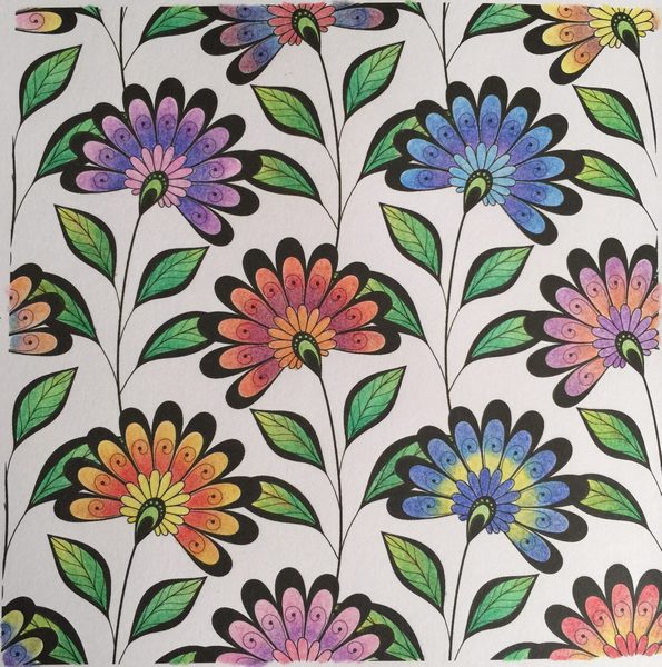 Moroccan style Mandala using various colors Two columns of flowers with blended colors of flowers backed by green leaves Fan shaped flowers showing blended colored petals and leaves. Stylised Purple Flowers Patterns of intertwined Leaves and Flowers Masses of delicately colored flowers Sunflower Fish with Bubbles Neon Pattern